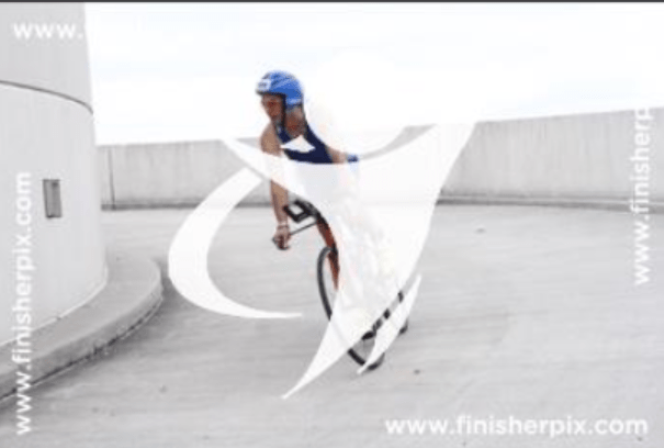 The first transition I booked it up the helix and into the changing area. I actually took my own wetsuit off (somewhat because I was dazed) and went. I yelled out my number, the guy brought my bag, I checked it, and we tore it open. I loaded up all my food in my side pouches, put on my socks, shoes, helmet, and glasses and ran out. I ran to my bike, got there before the person, and ran to the bike mount. I felt really good about how fast I got in and out and how well organized the transition was for bike.