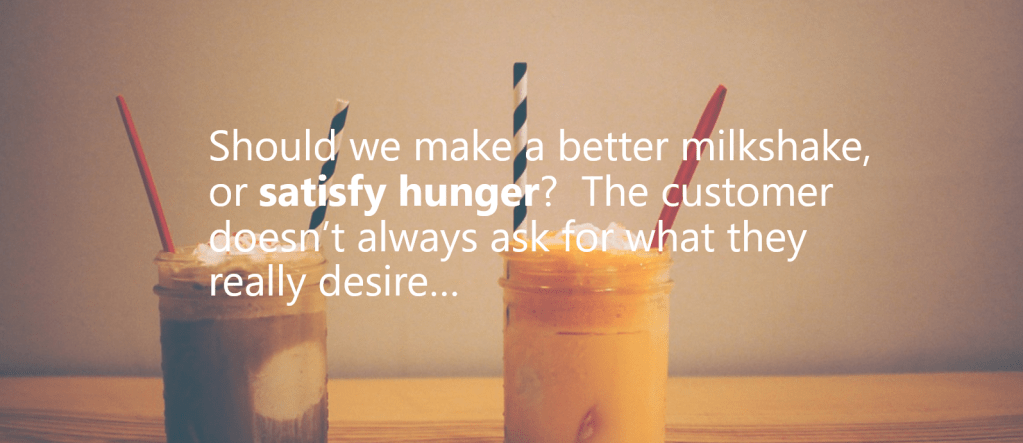 Think about Jobs Theory and what NEW job your customers are trying to get done. The goal now is to receive their feedback and change the game around how the unmet need will now be satisfied…