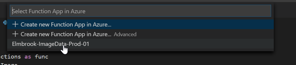 Then select “create” and build your function. It will take a few minutes to initially provision. While doing that, ensure you have prepared your Visual Studio Code environment for Python development.