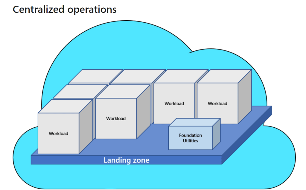 The centralized option represents where the IT organization has brought all cloud operations, governance, and execution under one roof. The IT organization runs everything and controls everything. It is very similar to the organizational models of the past, with control being in a central organization. You can see below an example from CAF: