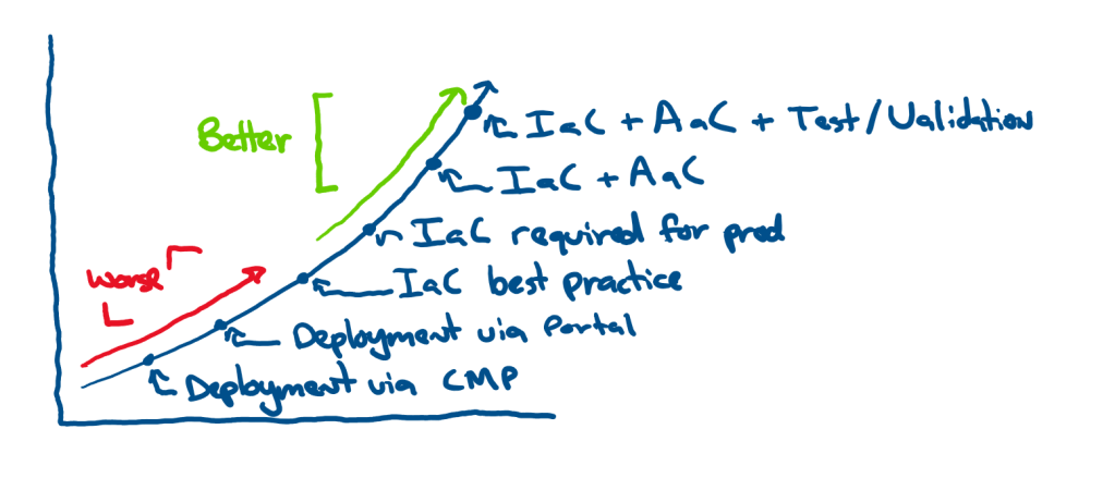 This can quickly get out of control. By consistent, I don’t mean consistently chaotic… I mean consistently controlled, uniform, and clean. We do this by implementing effective standards for deployment, leveraging techniques like Azure Policy, infrastructure-as-code, and release management. The goal of resource consistency is to make our environment understandable, supportable, and manageable after we’re gone.