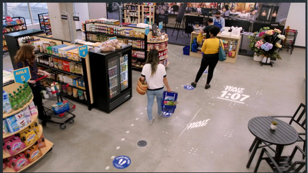 The next capability is Spacial Analysis, which is oriented around understanding the locations of individuals in a facility for purposes of safety and revenue. In the cases of safety it’s around current problems like social distancing. In the cases of revenue it might be around dwell time, wait time, areas of interest, etc. You can see an example of this analysis below in the visualization of the spacial distance of the individuals: