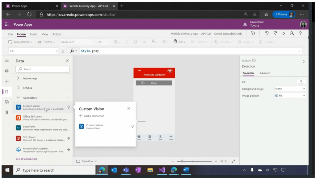 Even more work has been done in custom vision this year, including the efforts surrounding remaining capabilities. For instance, another capability of integrating custom vision with low/code no/code technologies in Power Apps. In an organization intending to do quality management based on completed work, cognitive services can review that completed product against what it *should* look like, then provide feedback on whether the job was completed successfully.