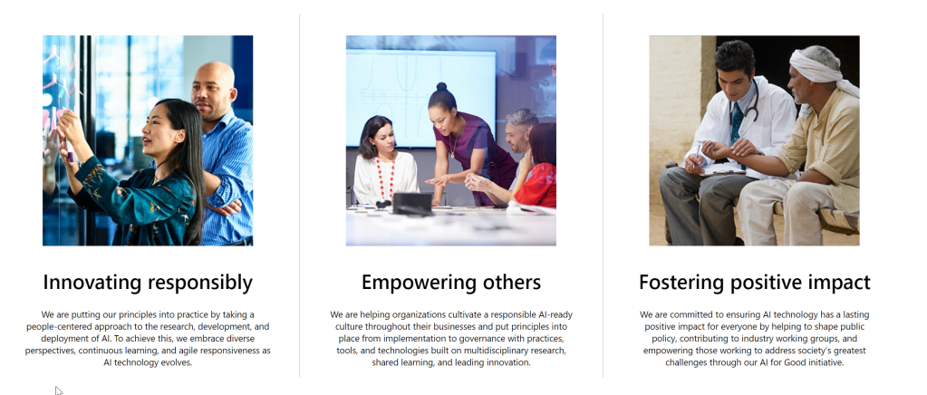 I find something Microsoft has done well is to drive responsible AI in everything they do. Satya talked about how technology needs to be driven with purpose. This includes core principals that we are building something purposeful and meaningful.