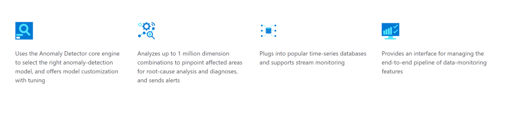 A very interesting cognitive service that was released this year was metrics advisor, a service that helps with prescriptively finding outliers and issues in a set of data coming from a monitored source. You can check more about it here. This brings a number of great capabilities to our organization: