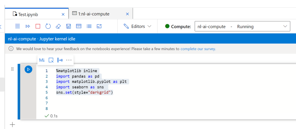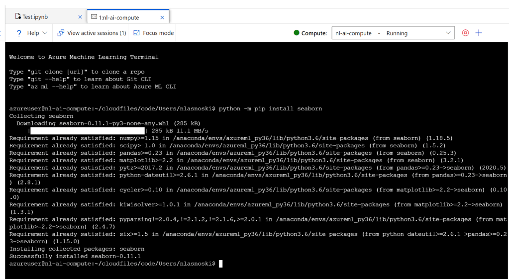 I was doing some testing in Azure Machine Learning Notebooks and ran into a problem where the module I was looking to use was not working properly. The error I recieved was “ModuleNotFoundError: No module named ‘seaborn'”. The code I used which resulted in this was: