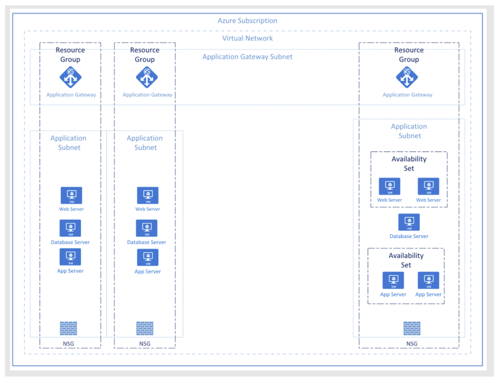 Example of Zero Trust architecture in cloud ecosystem… notice the network security groups between each application
