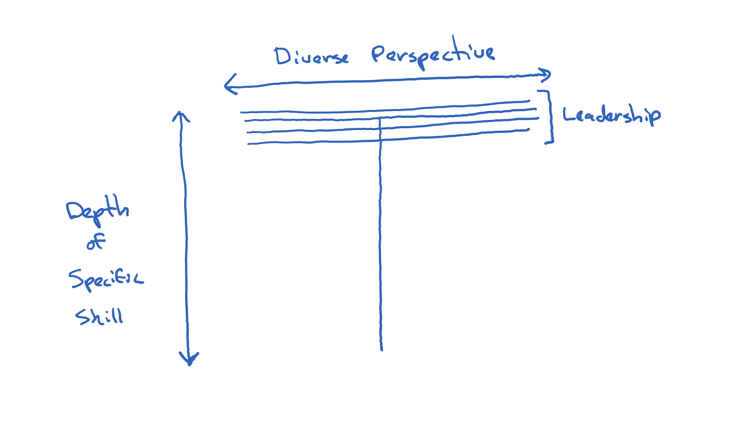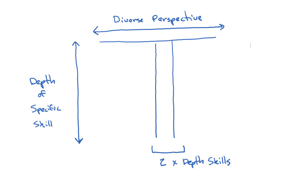 Here’s a diagram depicting this, with typically the vertical bar indicating that an individual can contribute in a specific function to an organization. That said, the absence of the horizontal bar would make that individual someone you likely wouldn’t want to work with, or at least requires special care.