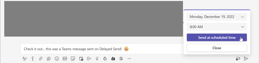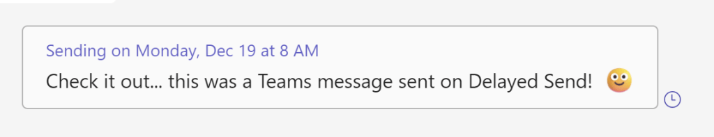 I recently wrote about Delayed Send in Outlook. Check out this feature for Delayed Send in Microsoft Teams. If you are trying to avoid causing unnecessary concern, friction, or stress after hours, but find yourself more productive during that time, use the delayed send feature to align to your recipient’s work hours.